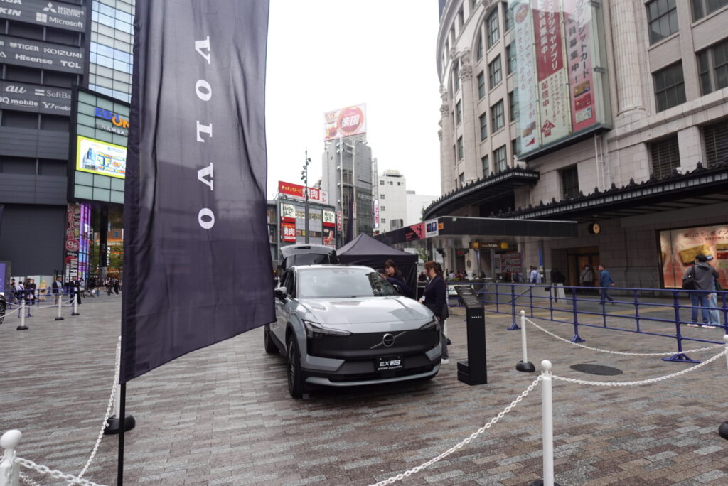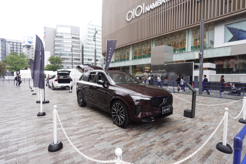 広場にはボルボの最新車両が展示され、来場者はその安全性能やデザインをじっくりと見学。